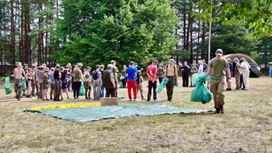 Przed wyruszeniem w ostępy leśne, Strażnik Leśny przypomniał uczestnikom obozu podstawowe zasady bezpieczeństwa w lesie. Dopiero wtedy grupa ruszyła na akcję sprzątania lasu. Z workami w dłoniach przemierzaliśmy leśne ścieżki, zbierając śmieci porozrzucane przez niefrasobliwych gości okolicznych lasów. Efekt? 16 pełnych worków śmieci – to robi wrażenie. Po powrocie do obozu czekała na wszystkich słodka bułka i chłodny sok. Po posiłku był również czas na pytania i rozmowy z leśnikami. Odpowiedzi na nurtujące nas kwestie o lesie, ochronie przyrody i pracy w terenie sprawiły, że każdy wróci z trwającego obozu bogatszy o nową wiedzę.