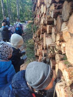 Mali odkrywcy z zainteresowaniem poznawali warstwy lasu, uczyli się, dlaczego wycina się drzewa oraz co można stworzyć z drewna – odnawialnego surowca, który towarzyszy nam na co dzień. Żaden stos drewna nie był straszny, a ciekawość i energia dzieci nie miały końca!