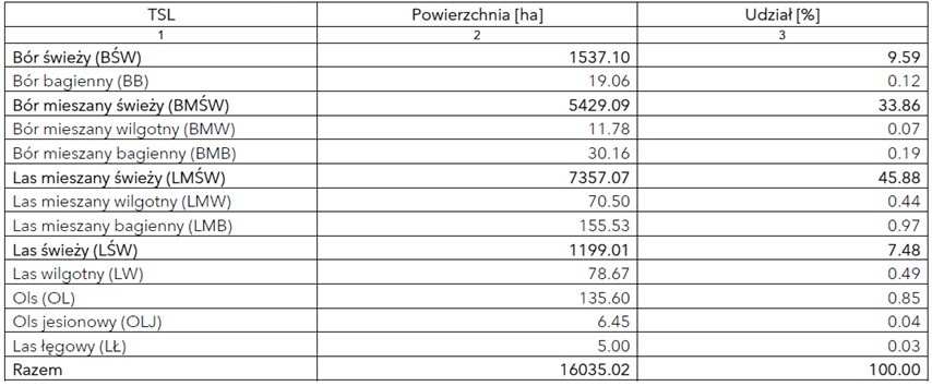 Powierzchnia typów siedliskowych lasu